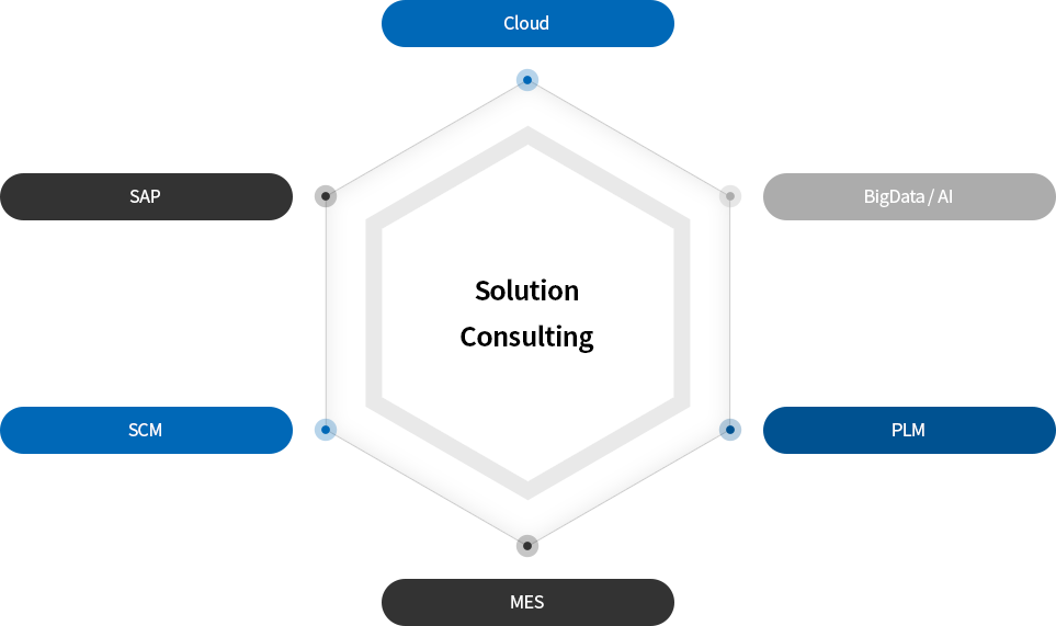 | SCM | 제조에서 영업, 서비스 영역의 전체 Supply Chain을 구성 개발, 제조, 구매, 물류, 마케팅, 영업 및 서비스 등 전체 최적화를 통해, 올바른 제품/서비스를 적재적소에 공급하여 고객만족도 향상, 이윤 극대화를 추구하는 프로세스, 시스템, 조직에 대한 총체적인 혁신 활동을 하는 구축서비스 |